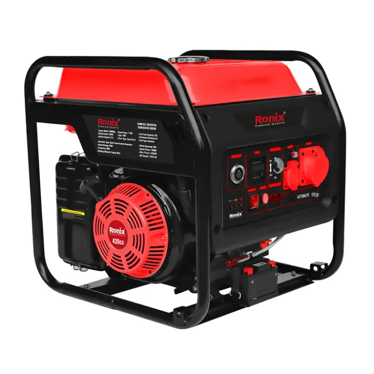 ژنراتور اینورتر کامپکت 8000 وات رونیکس مدل RH-4773 دستگاهی قدرتمند و کارآمد است که برای مصارف عمومی، کارگاهی و صنعتی طراحی و تولید شده است. این ژنراتور با موتور چهارزمانۀ 420 سیسی و حداکثر توان خروجی 8000 وات، عملکردی بینظیر و پایدار را در مدت زمان طولانی فراهم میکند.